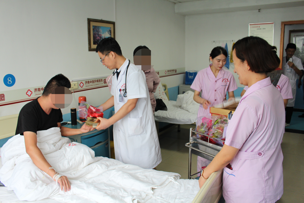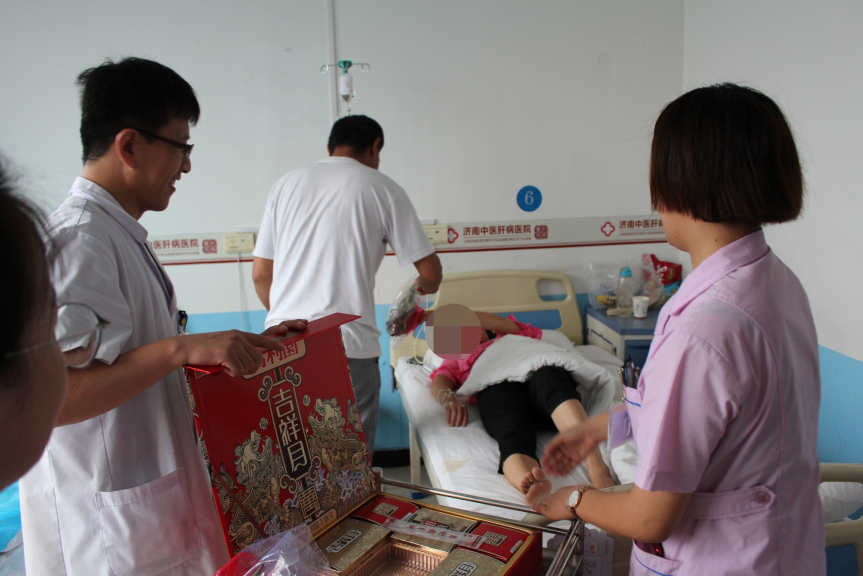 济南中医肝病医院在每年的中秋节和春节这样的传统佳节,都会为不能出院的患者送上这样一份“礼物”,充分彰显了“人民医院为人民”的服务宗旨,以患者为中心,不断不断提高服务和技术的同时,更加注重与患者的感情交流及心理需求,从细节上关心患者,对患者无微不至的人文关怀,为患者提供温暖亲情化服务,真正将关爱患者落到了实处。