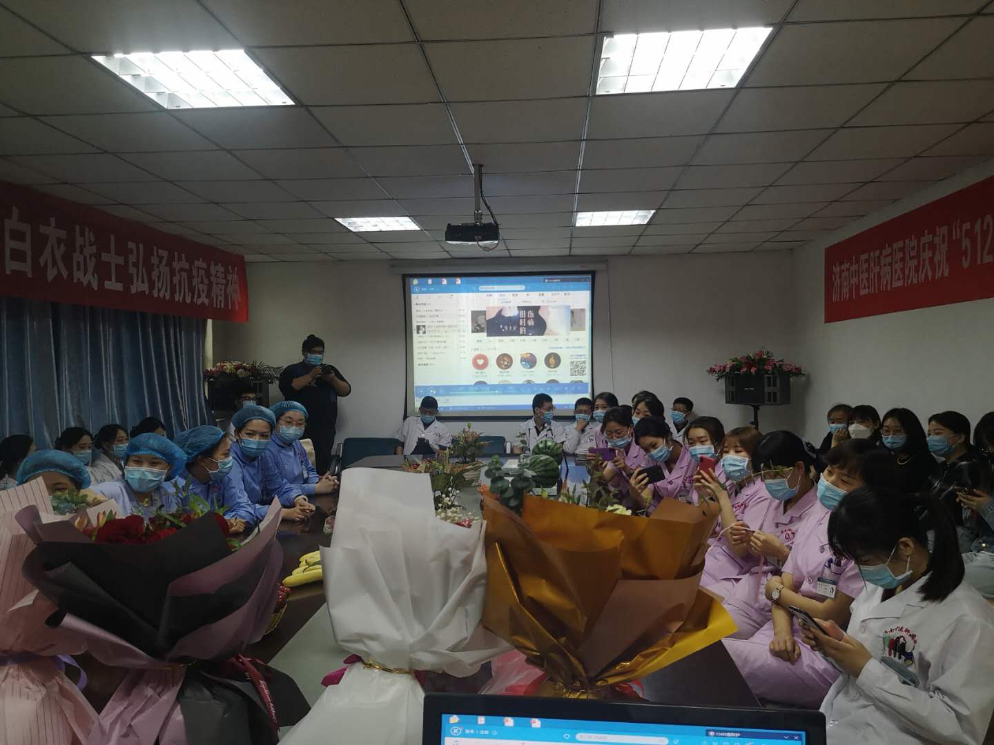 济南中医肝病医院:5.12护士节日庆祝活动,鲜花和蛋糕送给最可爱的人!