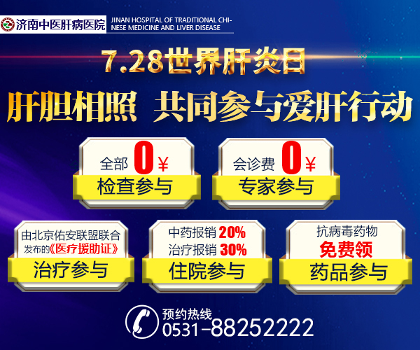温馨提示:我院领导将原定2020年8月15日结束的“肝胆相照 共同参与爱肝行动”京鲁肝病专家团治肝防瘤公益援助活动截止时间确定为2020年8月16日,让肝病患者在享受北京专家亲诊的同时,还可享受免费检查、治疗补贴、医疗援助、住院报销等活动优惠,切实缓解经济问题!有会诊需要的朋友请合理安排好时间,提前挂号预约!咨询热线:0531-88252222.